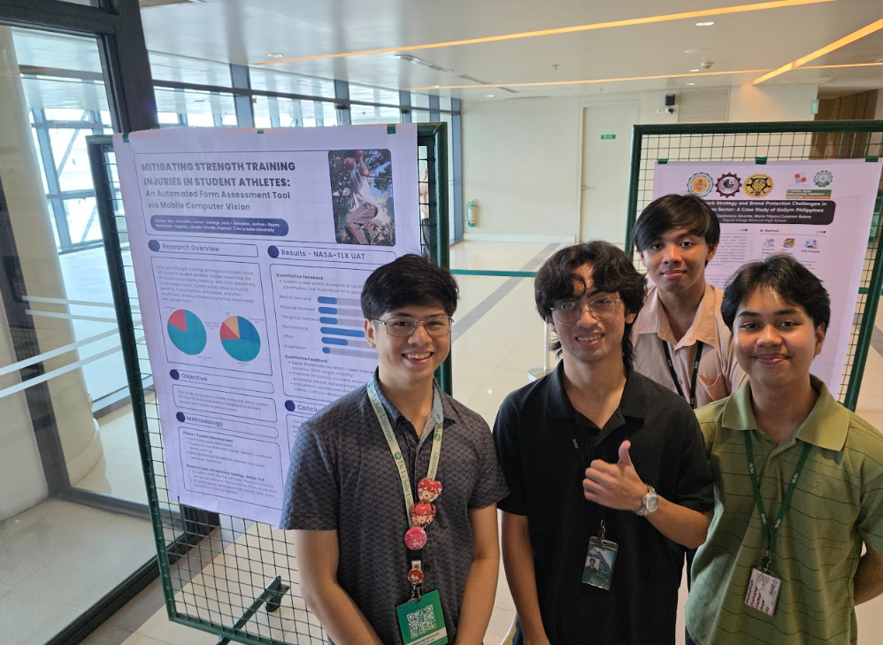 The Best Panel Presentation award was awarded to the research “Mitigating Strength Training Injuries in Student Athletes: An Automated Form Assessment Tool via Mobile Computer Vision,” presented by BSIT students Ron Fourier Alonzo, Aaron John Barcelita, Joshua Nicolai Gonzales, Nathaniel Kurt Reyes, Josh Enrico Cariaga, and Joseph Emmanuel Tagatac.